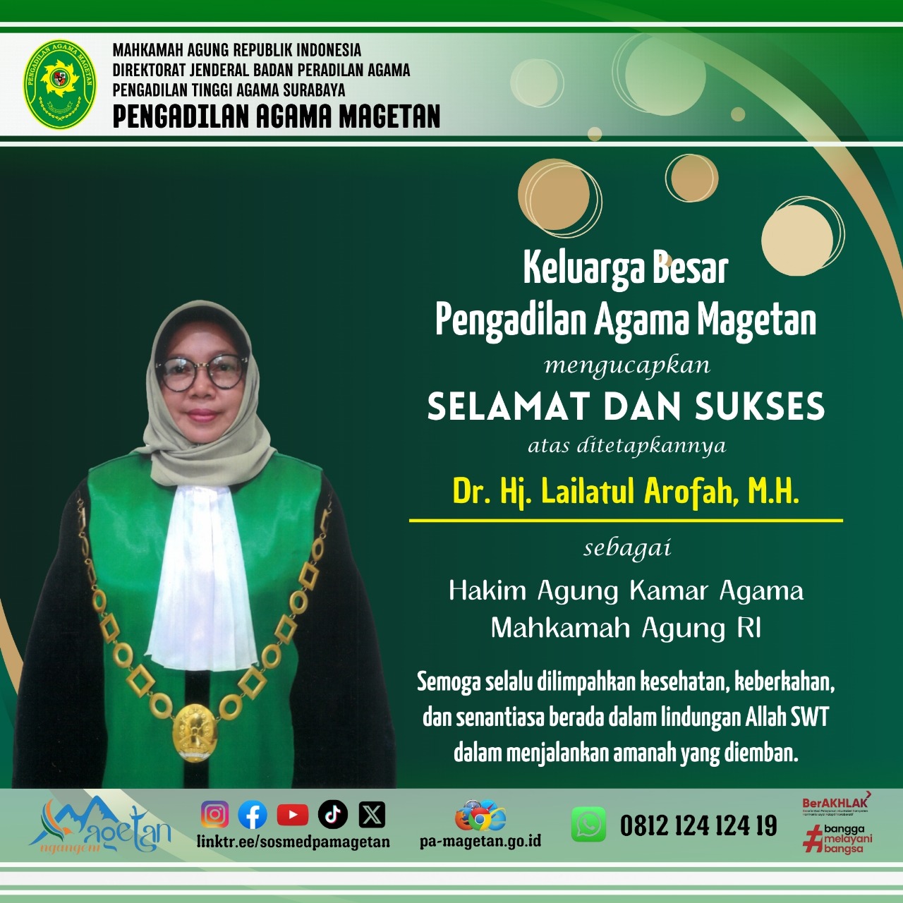 Selamat & Sukses atas ditetapkannya Dr. Hj. Lailatul Arofah, M.H. Written by Admin on 17 September 2025. Written by Admin on 17 September 2025. Hits: 254