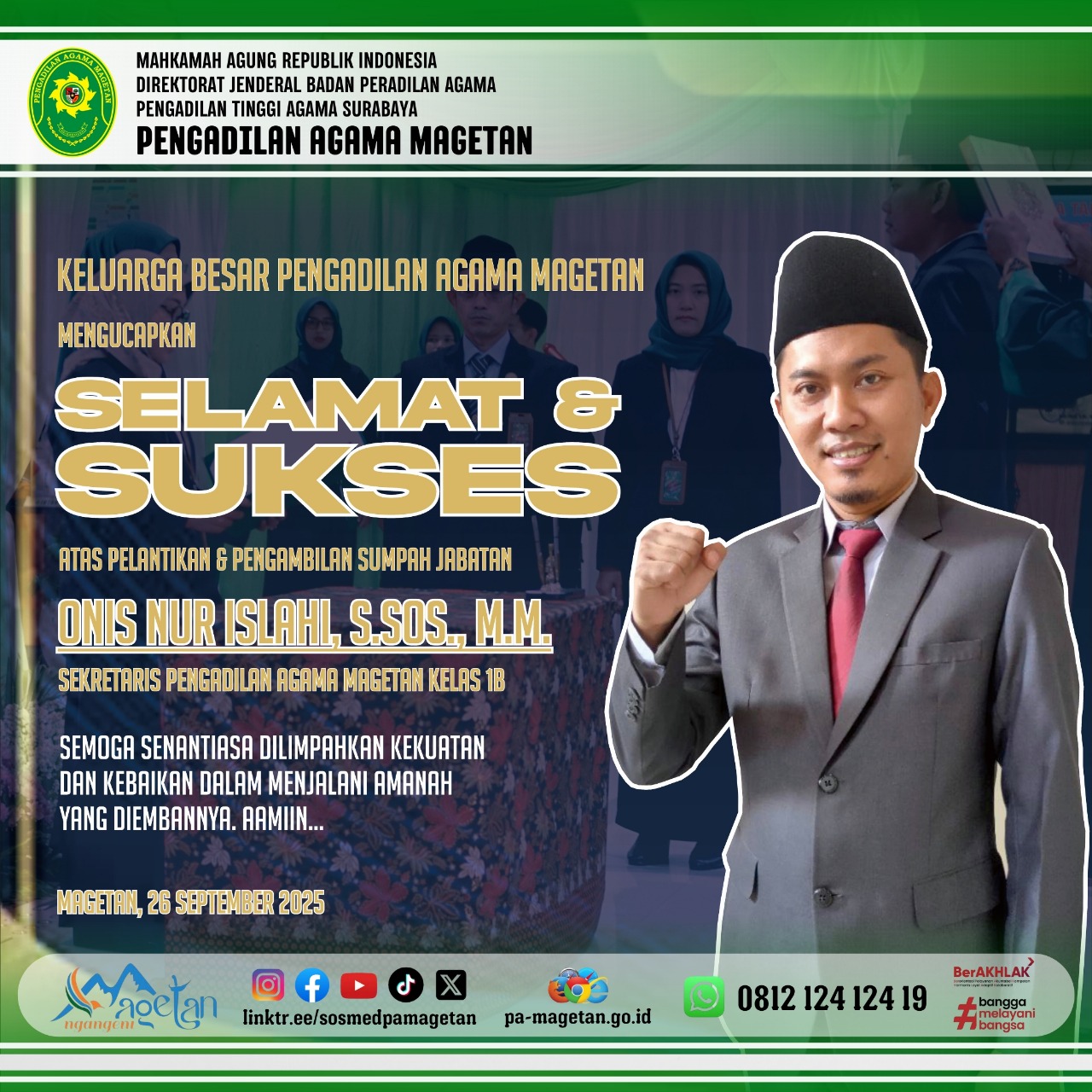 Selamat & Sukses Onis Nur Islahi, S.Sos., M.M. Written by Admin on 26 September 2025. Written by Admin on 26 September 2025. Hits: 501