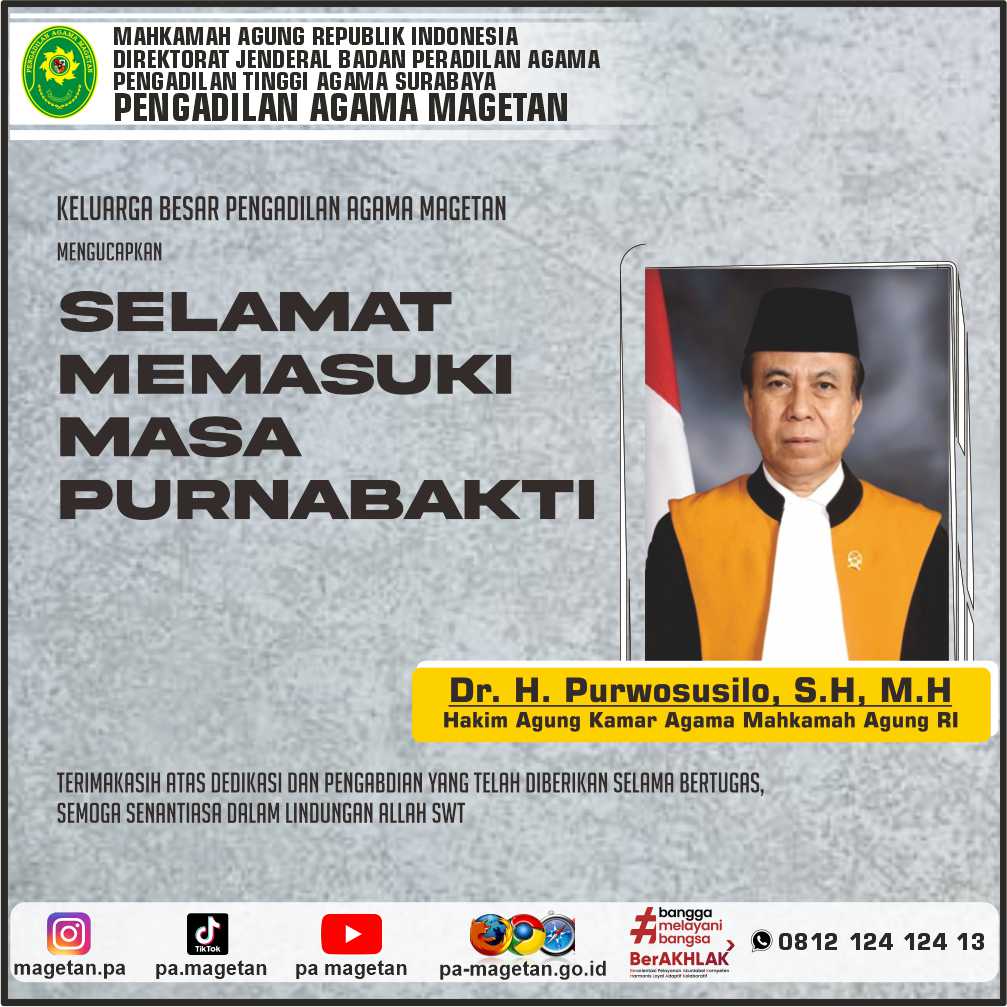 Selamat Memasuki Masa Purna Bakti Dr. H. Purwosusilo, S.H, M.H Written by Admin on 27 September 2024. Written by Admin on 27 September 2024. Hits: 545
