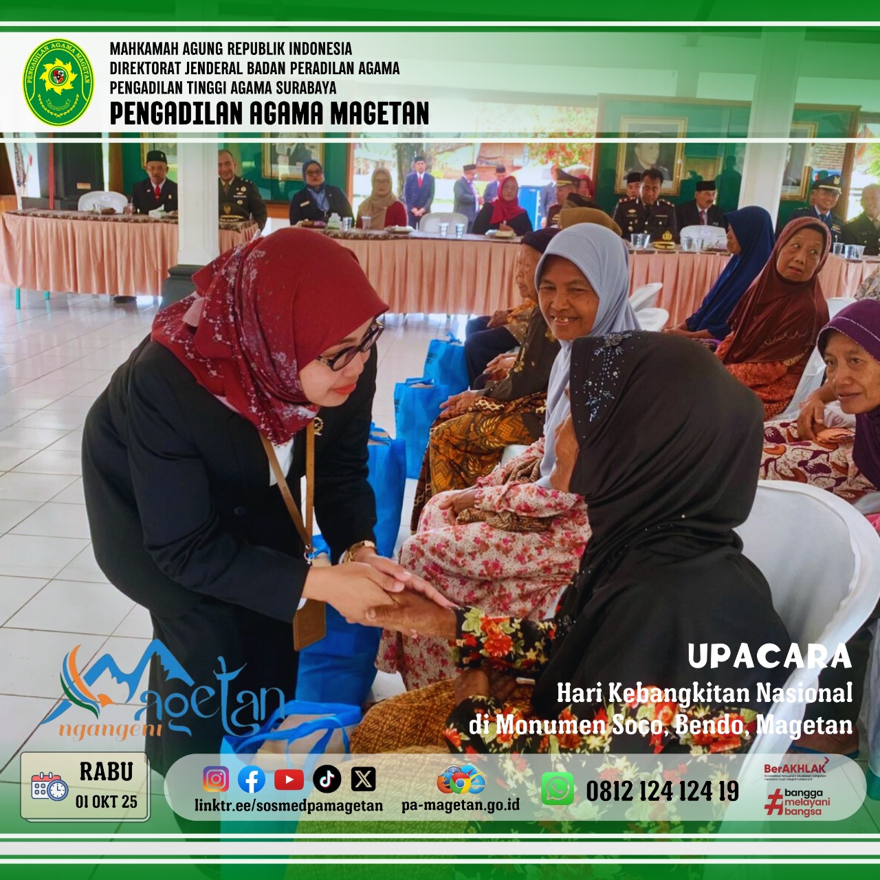 Dalam kesempatan tersebut, pemerintah daerah bersama Forkopimda juga menyerahkan bantuan sembako kepada warga sekitar sebagai wujud kepedulian sosial. Bantuan disalurkan secara simbolis setelah prosesi utama upacara selesai dilaksanakan. Langkah ini mencerminkan kebersamaan dan perhatian pemerintah daerah terhadap masyarakat kecil. Selain membantu meringankan beban ekonomi warga, kegiatan ini juga menumbuhkan rasa gotong royong. Harapannya, nilai kepedulian dan solidaritas semakin tumbuh di tengah masyarakat Magetan.