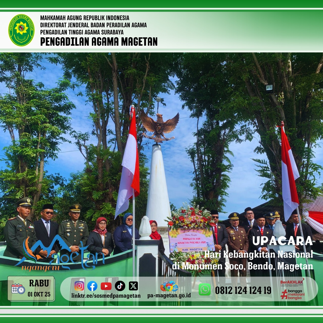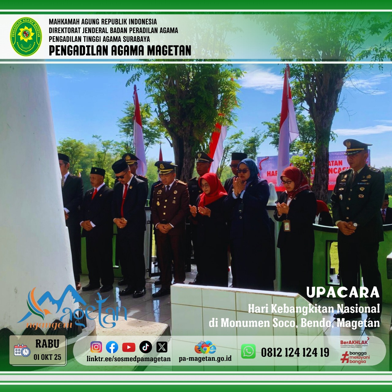 Magetan | pa-magetan.go.id | Ketua Pengadilan Agama Magetan, Ibu Dr. Hermin Sriwulan, S.H.I., S.H., M.H.I., menghadiri Upacara Peringatan Hari Kesaktian Pancasila pada Rabu, 01 Oktober 2025. Upacara tersebut diselenggarakan oleh Pemerintah Kabupaten Magetan sebagai bentuk penghormatan terhadap sejarah perjuangan bangsa. Kegiatan dilaksanakan di Monumen Soco, Desa Soco, Kecamatan Bendo, Kabupaten Magetan, Jawa Timur. Monumen Soco merupakan situs bersejarah yang dibangun untuk mengenang tragedi pemberontakan PKI tahun 1948.